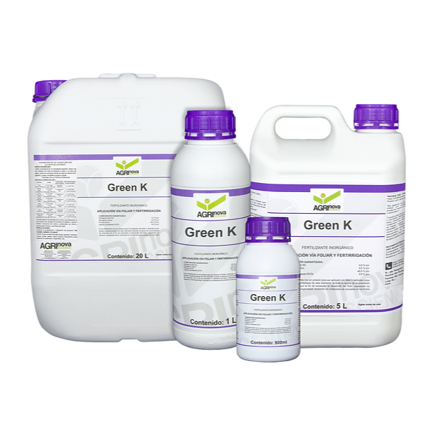Al utilizar Green K, puedes esperar una cosecha con frutos de mayor tamaño, aspecto más atractivo y homogeneidad entre ellos. Los beneficios incluyen un aumento en la densidad de los frutos, mejora en las propiedades organolépticas y la prevención y corrección de deficiencias de potasio en las plantas. Además, este producto ayuda a evitar antagonismos con otros cationes, asegurando un desarrollo saludable y equilibrado de las plantas.